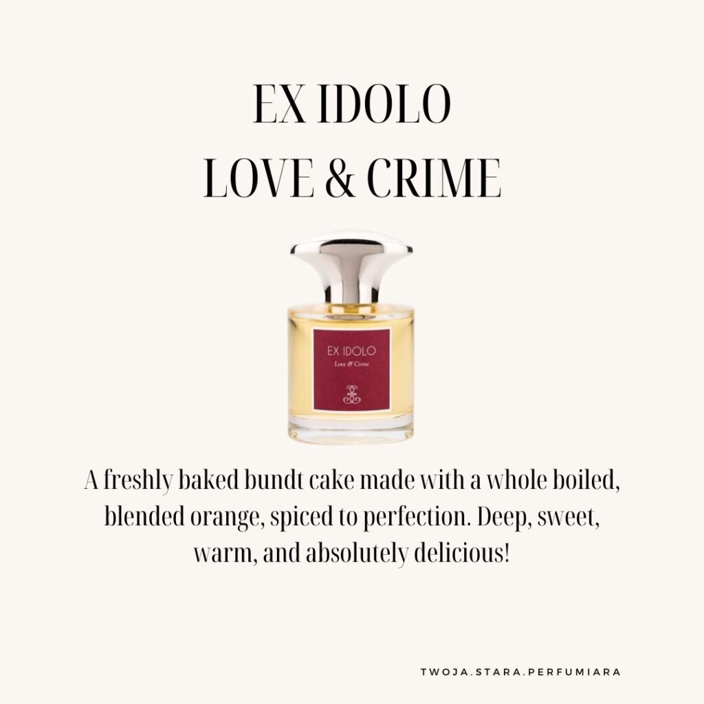 Ex Idolo Love & Crime is inspired by a dark love story. In 1905, May Cole baked a cake for her partner, Thomas Howard. Sounds innocent, right? However, the story takes on a darker tone when we learn that May hid metal files in the cake, which the couple used to escape from prison. The perfume captures this story by blending deep cocoa notes with joyful, juicy citrus.